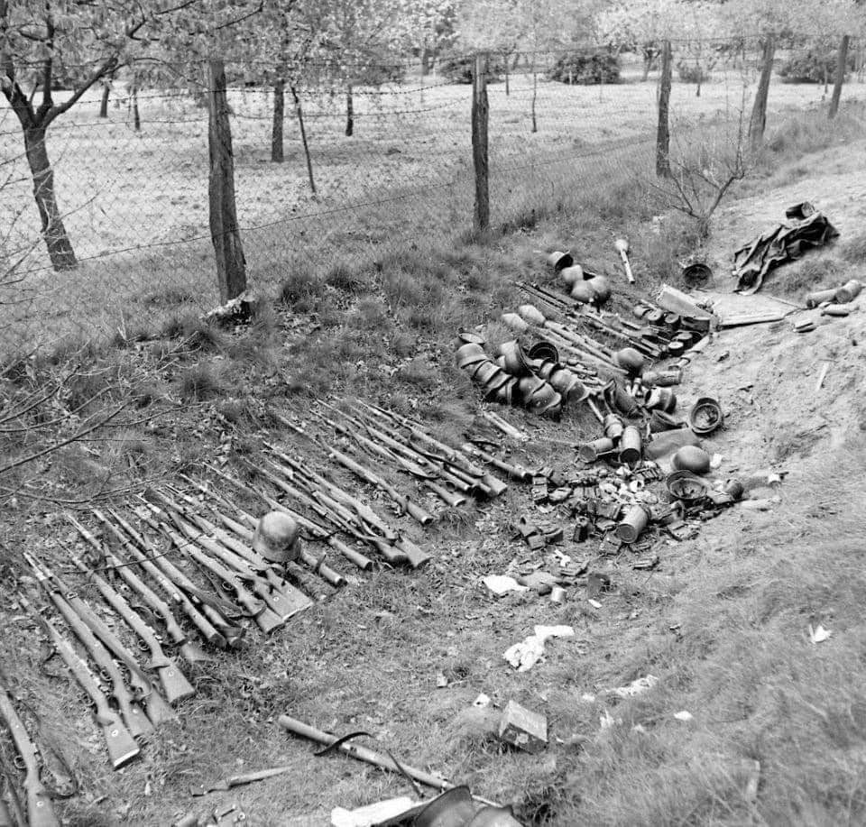 Erbeutete deutsche Kar98k-Gewehre in Stavanger, Norwegen, nach der Kapitulation Deutschlands im Jahr 1945.H