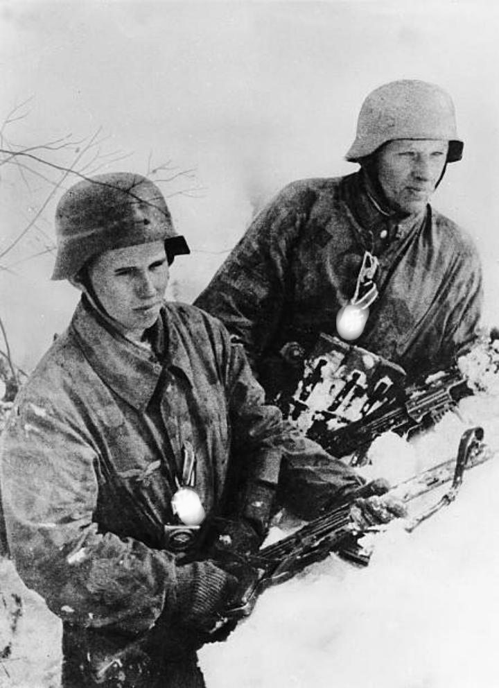 Ostfront, Winter 1943: Zwei deutsche Soldaten im Schnee – das Detail auf ihrer Brust machte sie zu lebenden Legenden.H