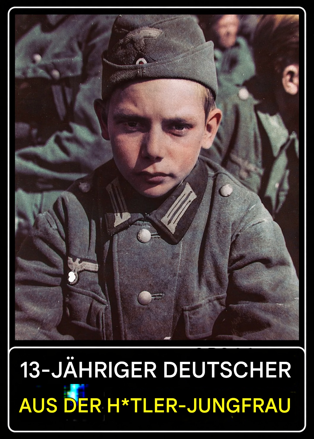 Das Bild zeigt einen Jungen, kaum älter als 13 Jahre, gekleidet in eine Uniform, die für viele heute ein Symbol einer dunklen Epoche ist. Sein Gesicht wirkt ernst, fast erwachsen – und doch verraten seine Züge, dass er eigentlich noch ein Kind ist. Genau dieser Kontrast macht das Foto so eindringlich: Es zeigt nicht nur eine Person, sondern steht stellvertretend für eine ganze Generation, die viel zu früh in eine Welt des Krieges hineingezogen wurde.